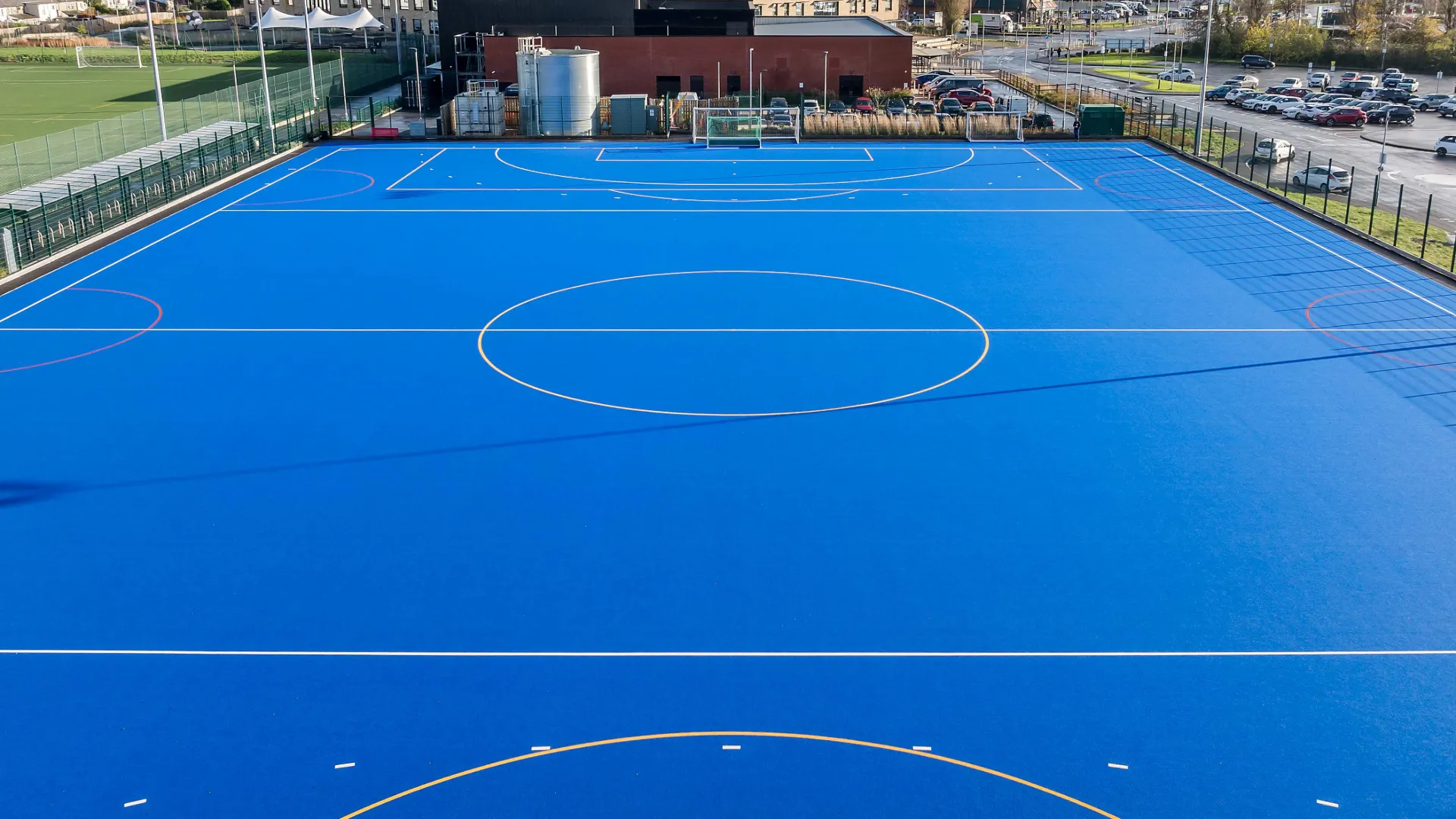 The complex features a blue Poligras SuperPlay field, installed primarily for hockey but also suitable for a variety of other low-impact sports. The sand-dressed synthetic turf delivers predictable ball response, excellent stability and minimal maintenance — an ideal solution for both school programmes and community groups.