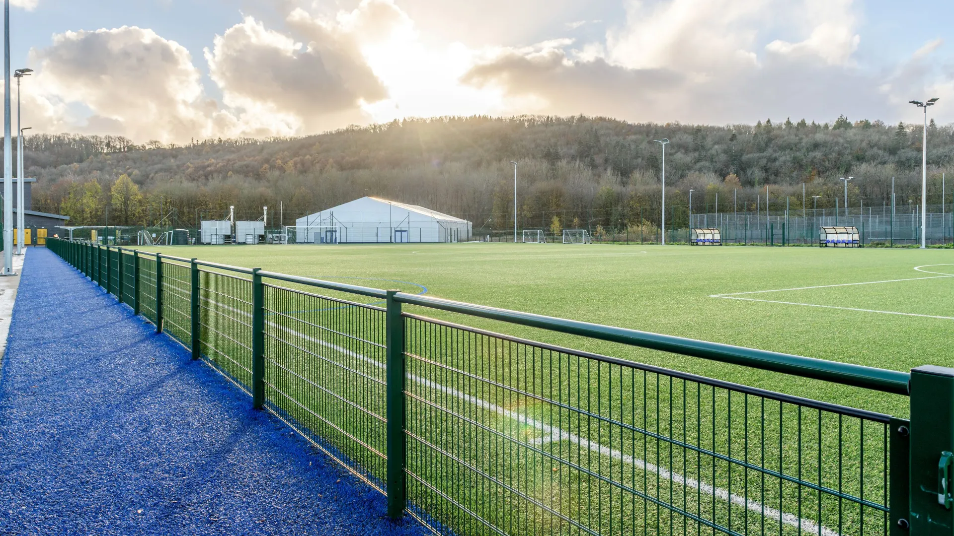 A central highlight of the outdoor facilities is the LigaTurf Legend Pro field with line markings for both rugby and football. This robust, high-performance surface uses Polytan’s multi-shape fibre technology, ensuring excellent resilience, a reliable ball roll and long-lasting visual quality — ideal for multipurpose training and match play across both sports.