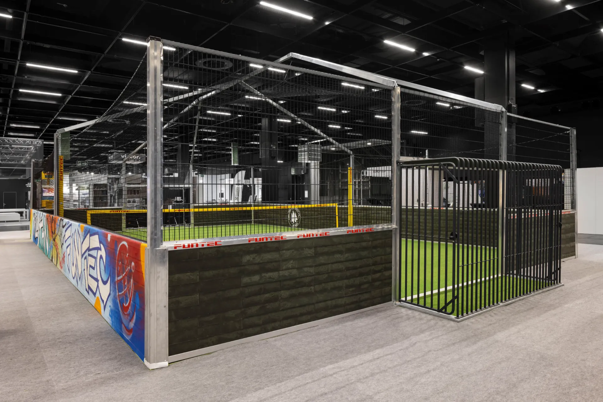 Pourl’installation sur le salon, Polytan a collaboré avec Funtec Sports GmbH à laconception de l’espace d’exposition. Dans ce cadre, l’artiste stuttgartois Matthias Megyeri a réalisé un motif graphique ludique pour l’un des quatre mursextérieurs de l’arène, soulignant le concept de présentation commun aux deuxentreprises. Bien que cette œuvre ait été spécialement conçue pour la FSB, ceprojet montre que les exploitants peuvent, si nécessaire, personnaliserl’apparence de l’Arena GT en fonction des couleurs, de l’identité visuelle oudu caractère de leur club.